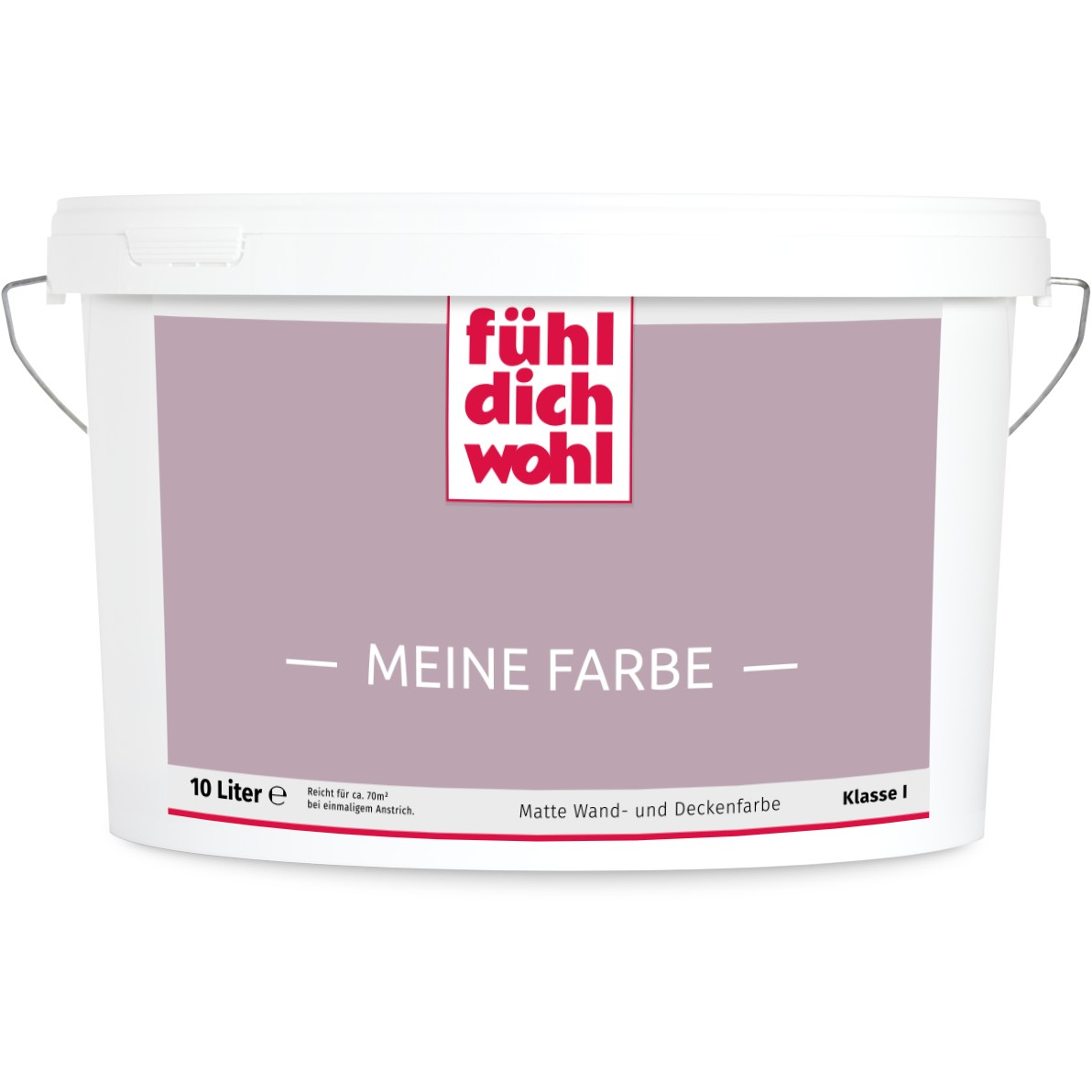 Fühl Dich Wohl "MEINE FARBE" ist eine Dispersionsfarbe mit höchstem Deckvermögen in Ihrem ausgewählten Farbton. Deckt beim einmaligen Anstrich. Spezielle Rezeptur für tropfarmes Verarbeiten.