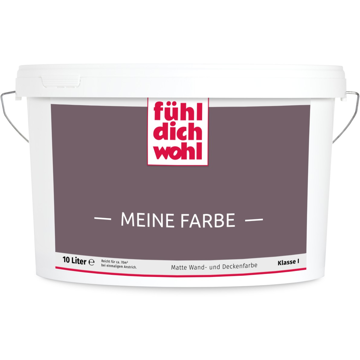 Fühl Dich Wohl "MEINE FARBE" ist eine Dispersionsfarbe mit höchstem Deckvermögen in Ihrem ausgewählten Farbton. Deckt beim einmaligen Anstrich. Spezielle Rezeptur für tropfarmes Verarbeiten.