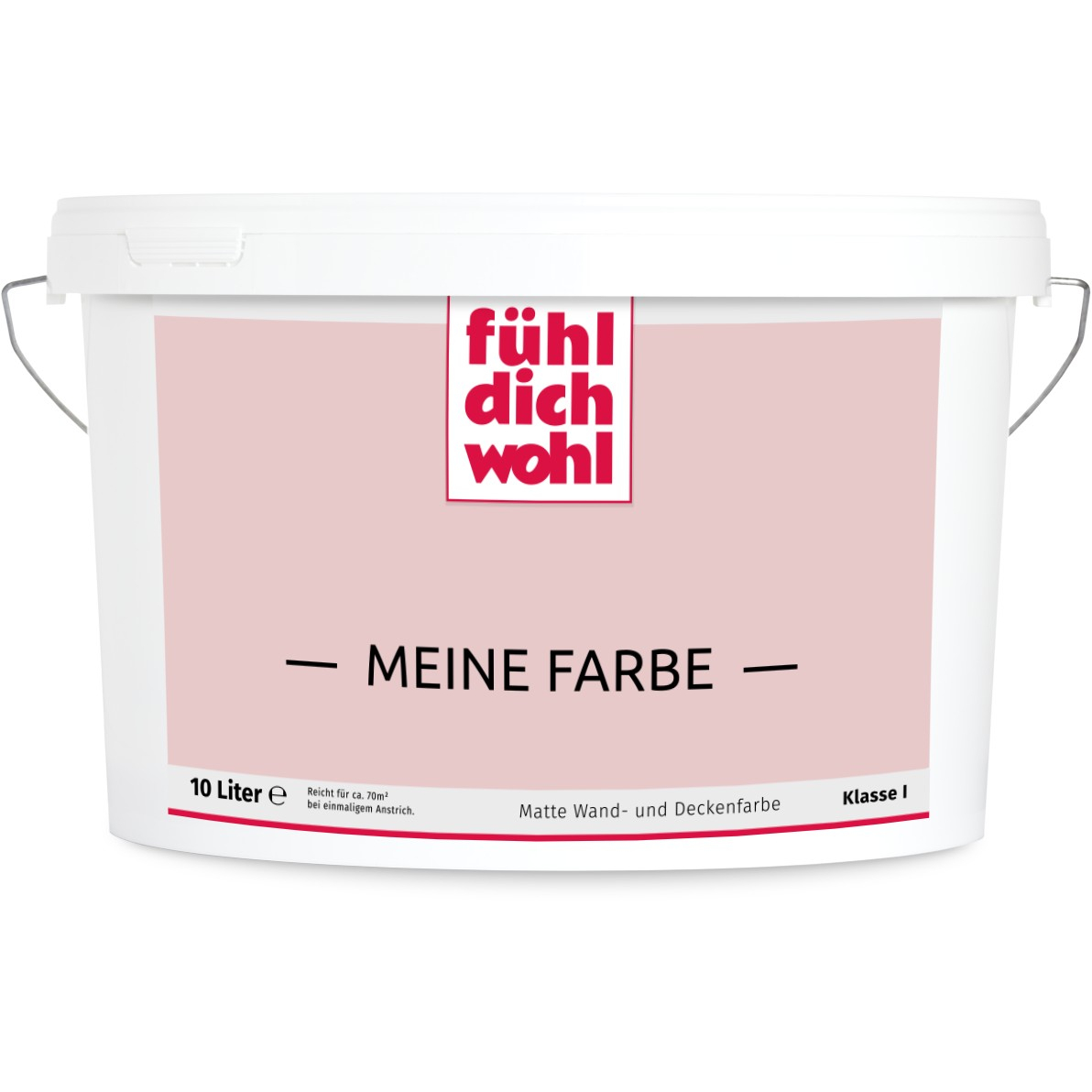 Fühl Dich Wohl "MEINE FARBE" ist eine Dispersionsfarbe mit höchstem Deckvermögen in Ihrem ausgewählten Farbton. Deckt beim einmaligen Anstrich. Spezielle Rezeptur für tropfarmes Verarbeiten.