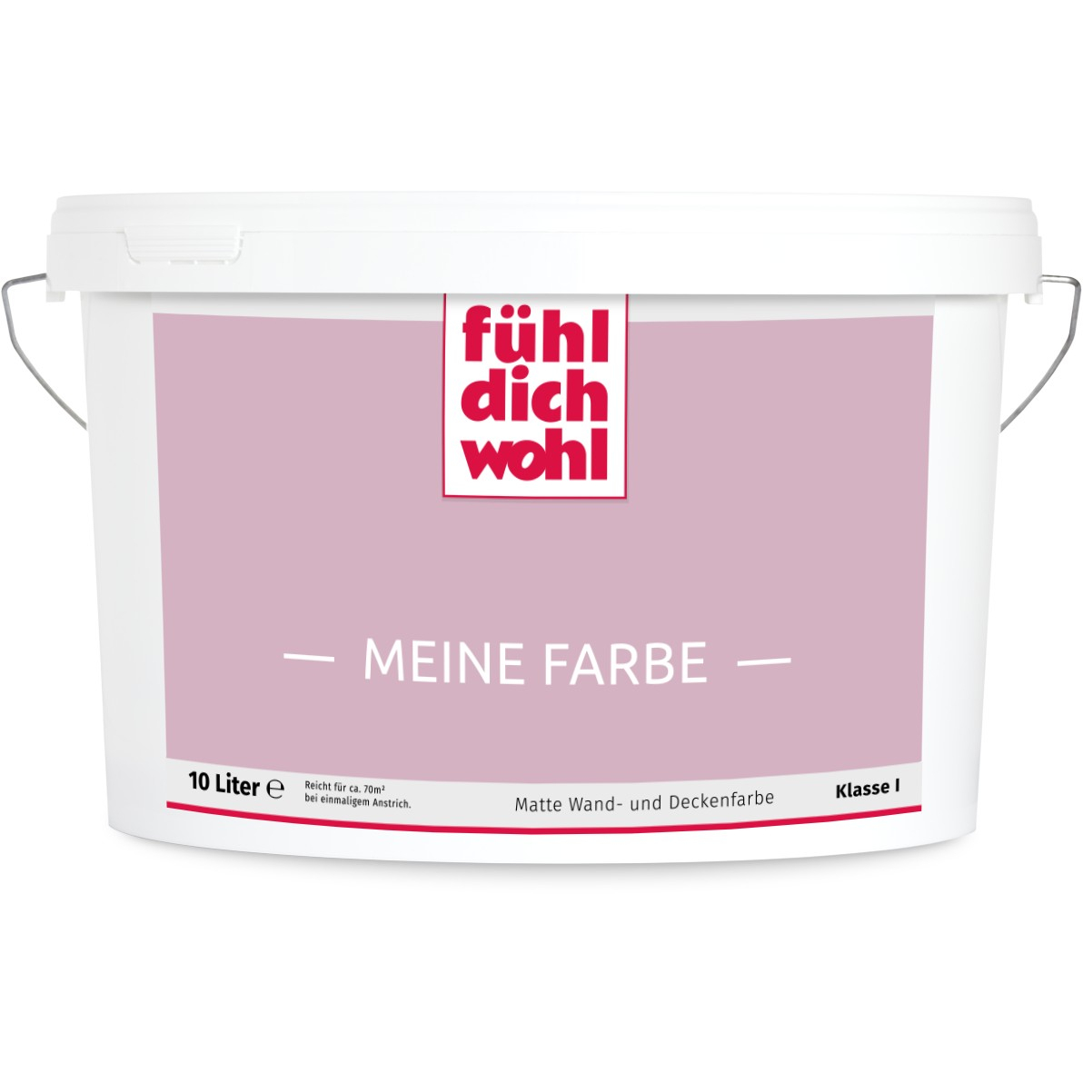Fühl Dich Wohl "MEINE FARBE" ist eine Dispersionsfarbe mit höchstem Deckvermögen in Ihrem ausgewählten Farbton. Deckt beim einmaligen Anstrich. Spezielle Rezeptur für tropfarmes Verarbeiten.