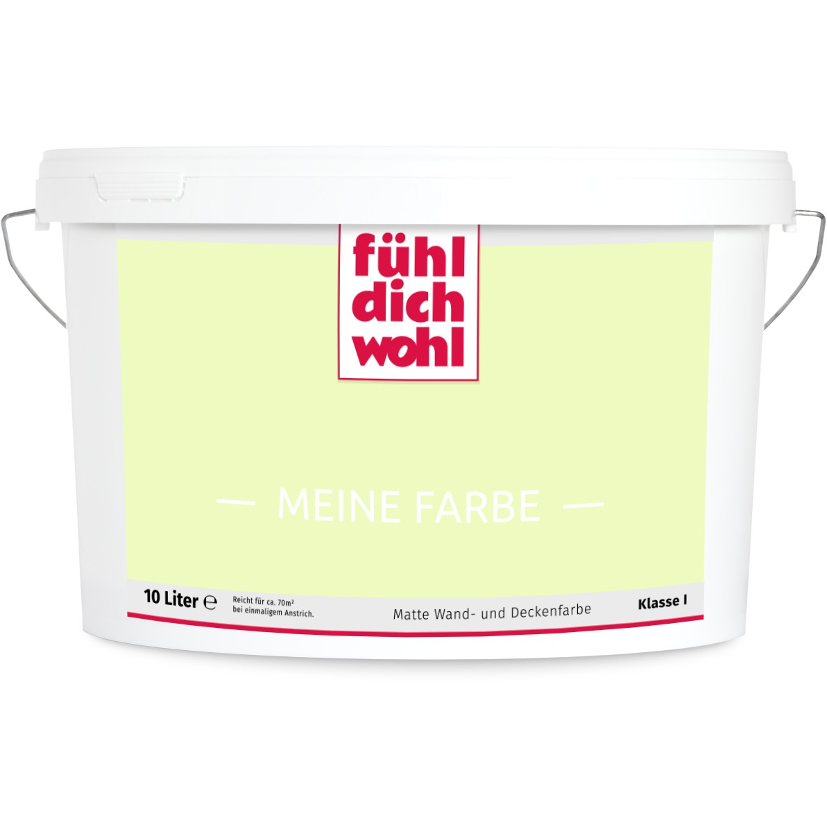 Fühl Dich Wohl "MEINE FARBE" ist eine Dispersionsfarbe mit höchstem Deckvermögen in Ihrem ausgewählten Farbton. Deckt beim einmaligen Anstrich. Spezielle Rezeptur für tropfarmes Verarbeiten.