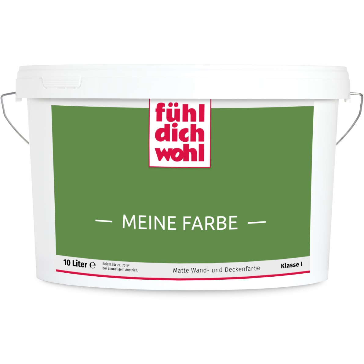 Fühl Dich Wohl "MEINE FARBE" ist eine Dispersionsfarbe mit höchstem Deckvermögen in Ihrem ausgewählten Farbton. Deckt beim einmaligen Anstrich. Spezielle Rezeptur für tropfarmes Verarbeiten.