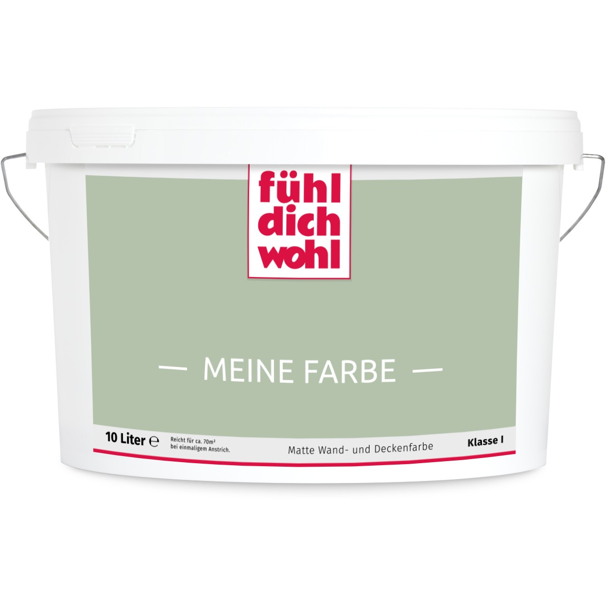 Fühl Dich Wohl "MEINE FARBE" ist eine Dispersionsfarbe mit höchstem Deckvermögen in Ihrem ausgewählten Farbton. Deckt beim einmaligen Anstrich. Spezielle Rezeptur für tropfarmes Verarbeiten.