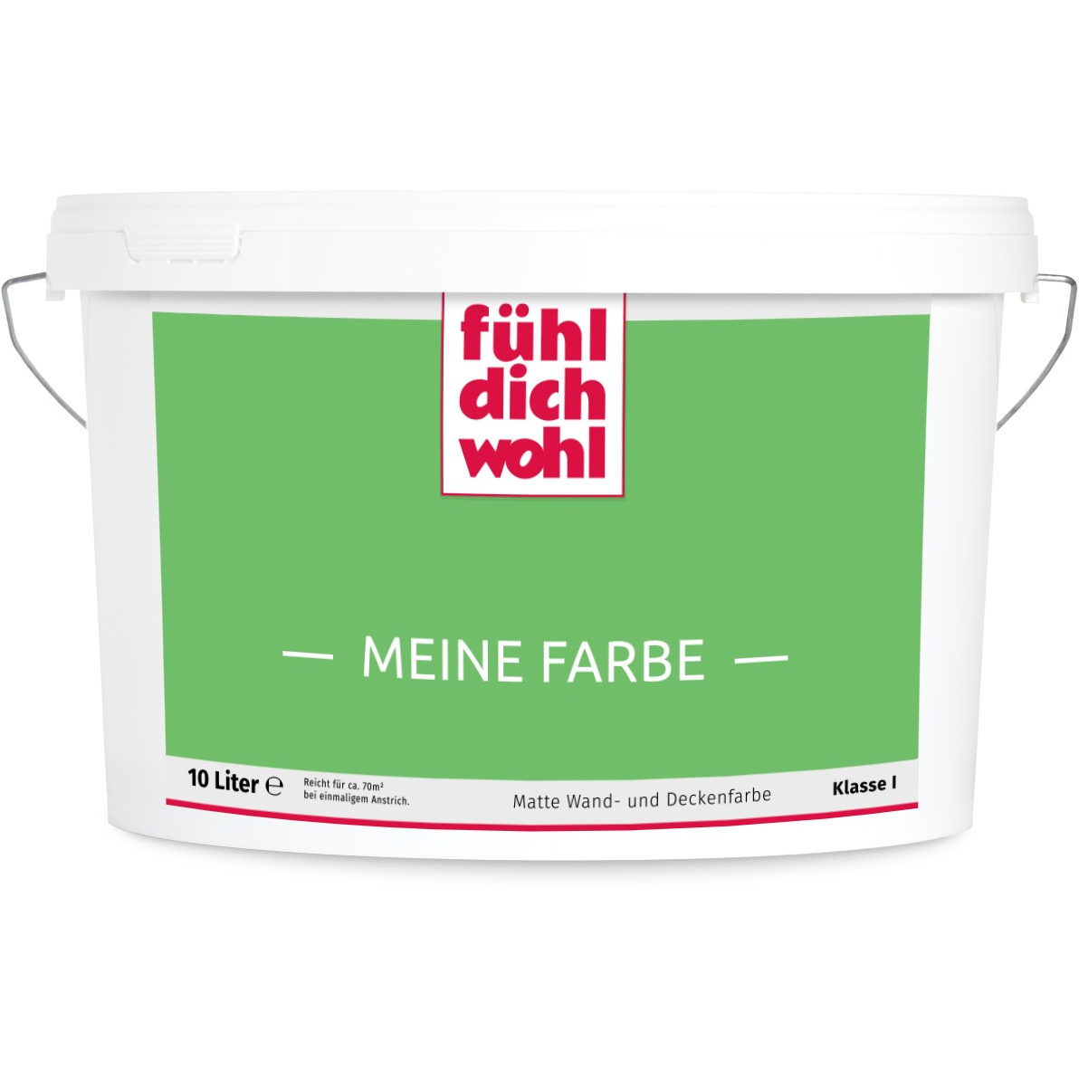 Fühl Dich Wohl "MEINE FARBE" ist eine Dispersionsfarbe mit höchstem Deckvermögen in Ihrem ausgewählten Farbton. Deckt beim einmaligen Anstrich. Spezielle Rezeptur für tropfarmes Verarbeiten.