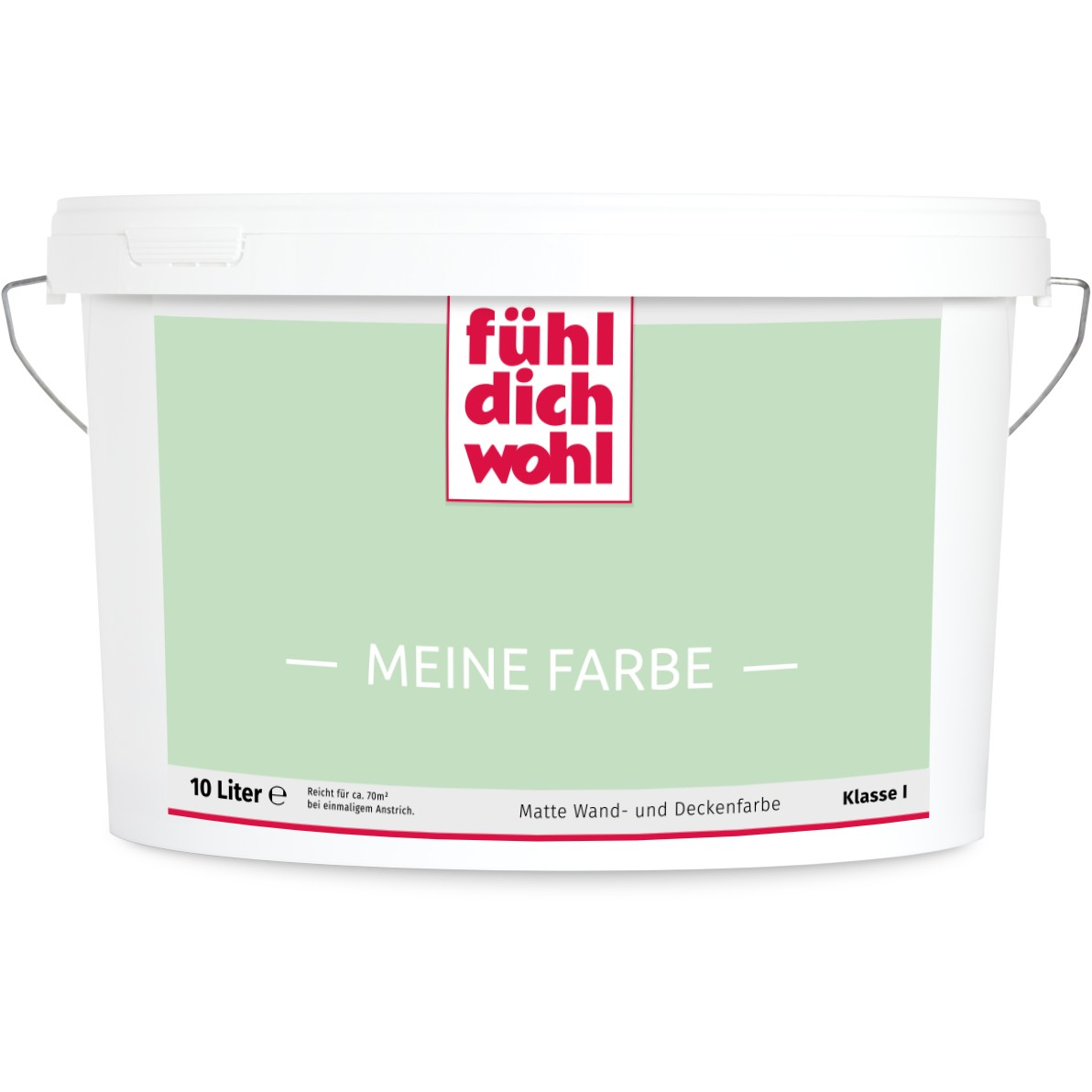 Fühl Dich Wohl "MEINE FARBE" ist eine Dispersionsfarbe mit höchstem Deckvermögen in Ihrem ausgewählten Farbton. Deckt beim einmaligen Anstrich. Spezielle Rezeptur für tropfarmes Verarbeiten.
