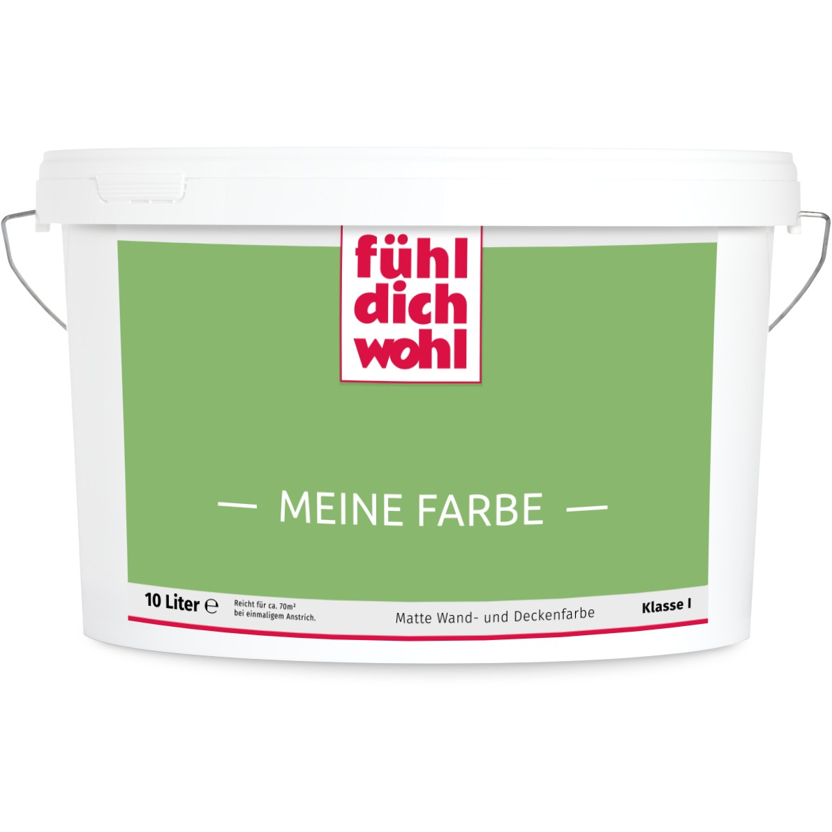 Fühl Dich Wohl "MEINE FARBE" ist eine Dispersionsfarbe mit höchstem Deckvermögen in Ihrem ausgewählten Farbton. Deckt beim einmaligen Anstrich. Spezielle Rezeptur für tropfarmes Verarbeiten.