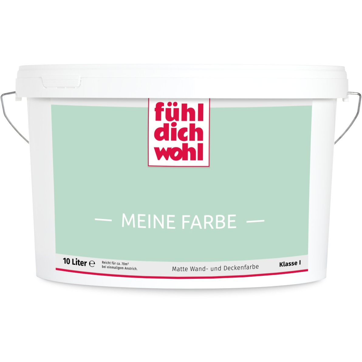 Fühl Dich Wohl "MEINE FARBE" ist eine Dispersionsfarbe mit höchstem Deckvermögen in Ihrem ausgewählten Farbton. Deckt beim einmaligen Anstrich. Spezielle Rezeptur für tropfarmes Verarbeiten.