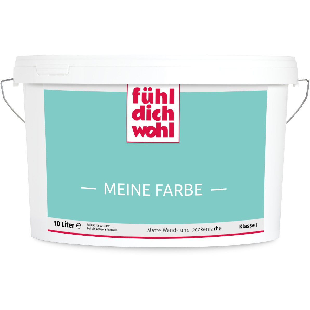 Fühl Dich Wohl "MEINE FARBE" ist eine Dispersionsfarbe mit höchstem Deckvermögen in Ihrem ausgewählten Farbton. Deckt beim einmaligen Anstrich. Spezielle Rezeptur für tropfarmes Verarbeiten.