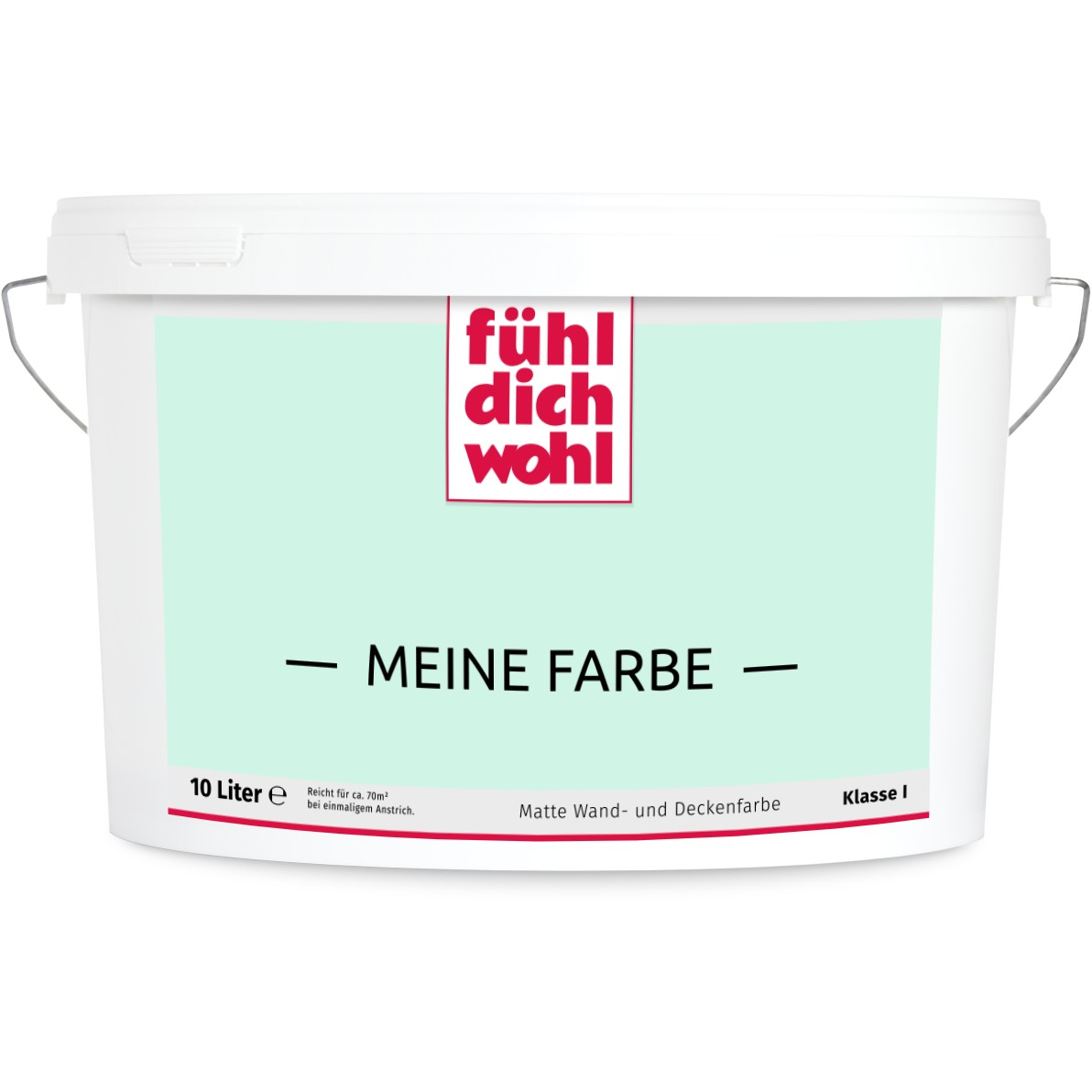 Fühl Dich Wohl "MEINE FARBE" ist eine Dispersionsfarbe mit höchstem Deckvermögen in Ihrem ausgewählten Farbton. Deckt beim einmaligen Anstrich. Spezielle Rezeptur für tropfarmes Verarbeiten.