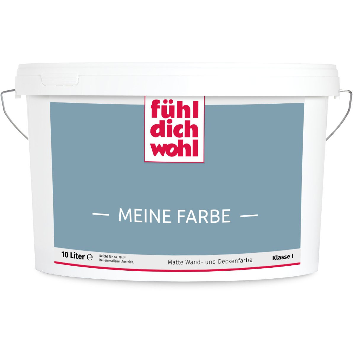 Fühl Dich Wohl "MEINE FARBE" ist eine Dispersionsfarbe mit höchstem Deckvermögen in Ihrem ausgewählten Farbton. Deckt beim einmaligen Anstrich. Spezielle Rezeptur für tropfarmes Verarbeiten.