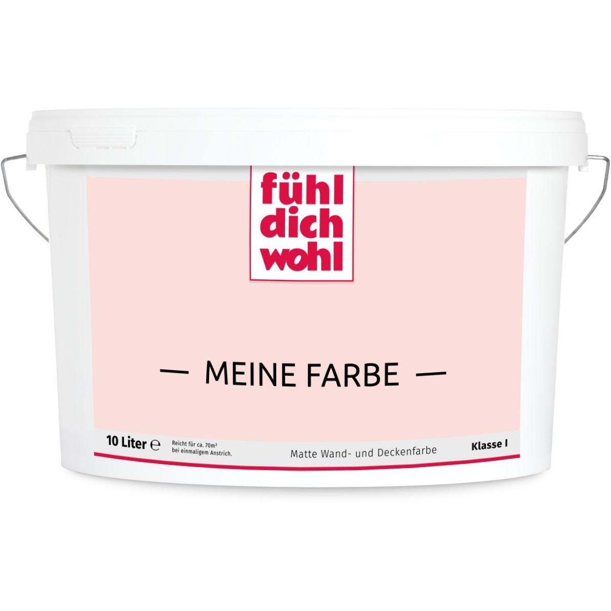 Fühl Dich Wohl "MEINE FARBE" ist eine Dispersionsfarbe mit höchstem Deckvermögen in Ihrem ausgewählten Farbton. Deckt beim einmaligen Anstrich. Spezielle Rezeptur für tropfarmes Verarbeiten.