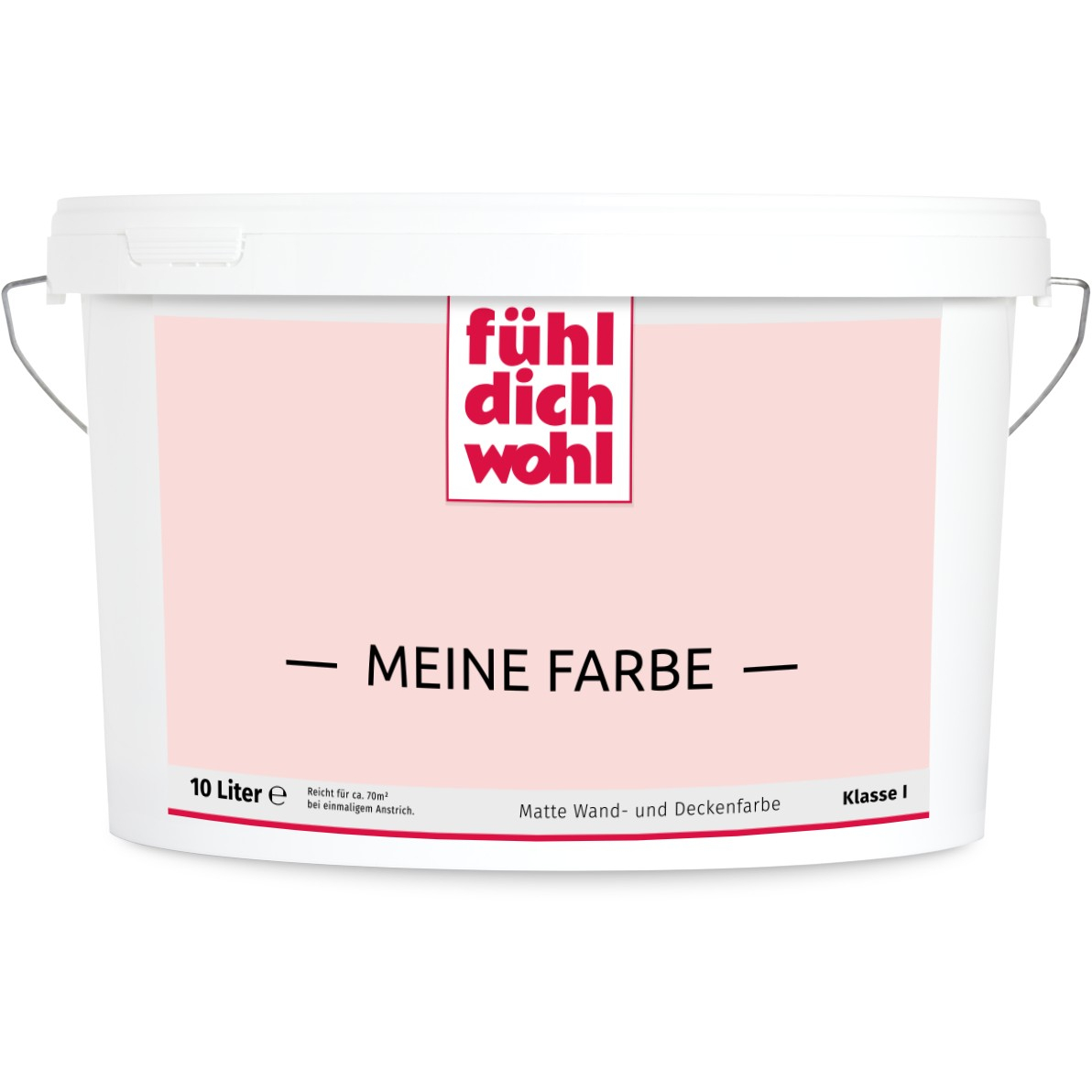 Fühl Dich Wohl "MEINE FARBE" ist eine Dispersionsfarbe mit höchstem Deckvermögen in Ihrem ausgewählten Farbton. Deckt beim einmaligen Anstrich. Spezielle Rezeptur für tropfarmes Verarbeiten.