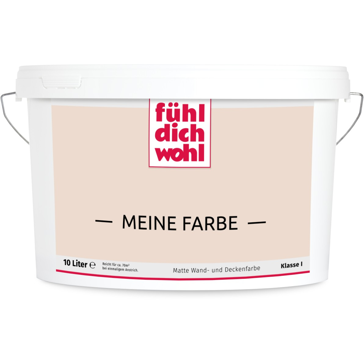 Fühl Dich Wohl "MEINE FARBE" ist eine Dispersionsfarbe mit höchstem Deckvermögen in Ihrem ausgewählten Farbton. Deckt beim einmaligen Anstrich. Spezielle Rezeptur für tropfarmes Verarbeiten.