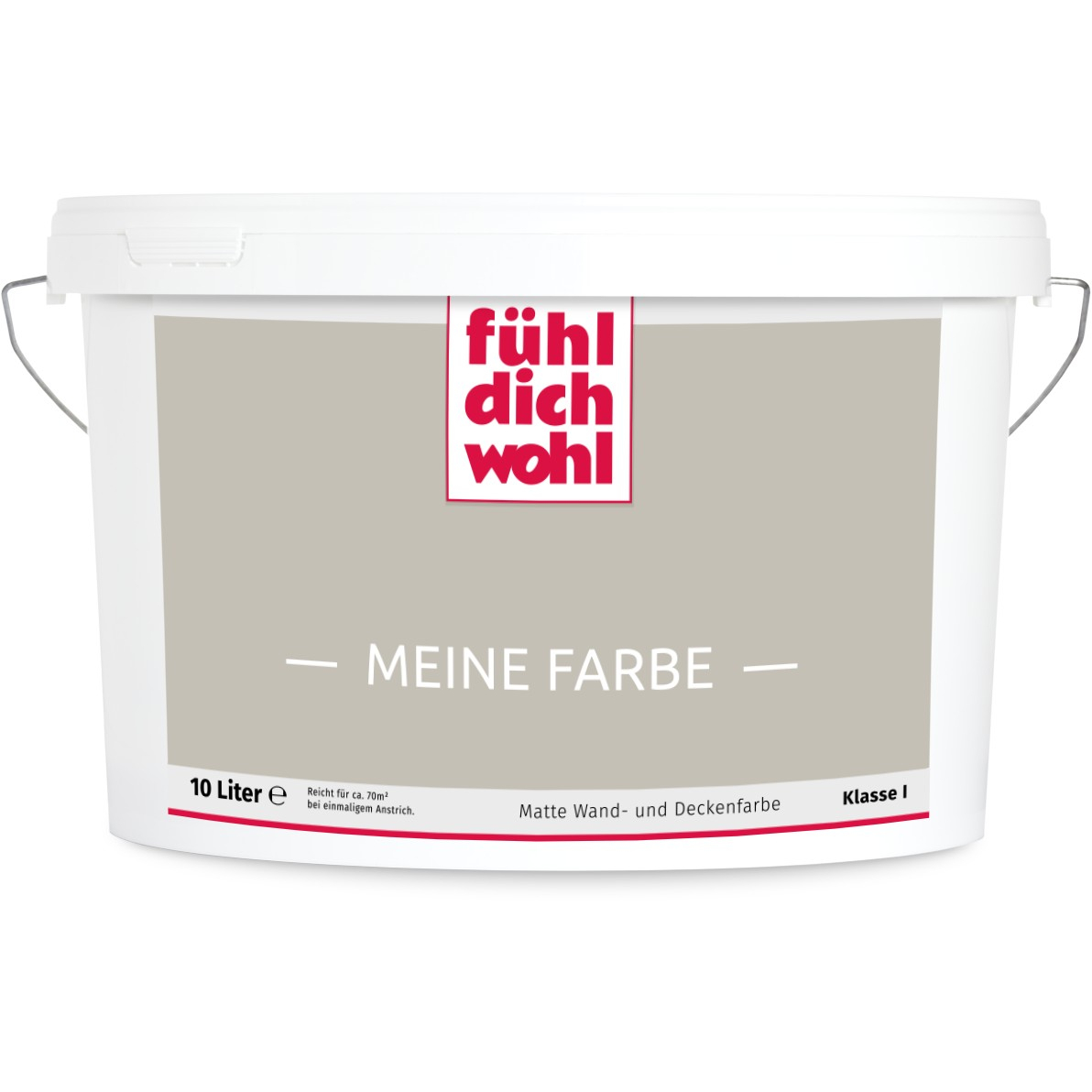 Fühl Dich Wohl "MEINE FARBE" ist eine Dispersionsfarbe mit höchstem Deckvermögen in Ihrem ausgewählten Farbton. Deckt beim einmaligen Anstrich. Spezielle Rezeptur für tropfarmes Verarbeiten.