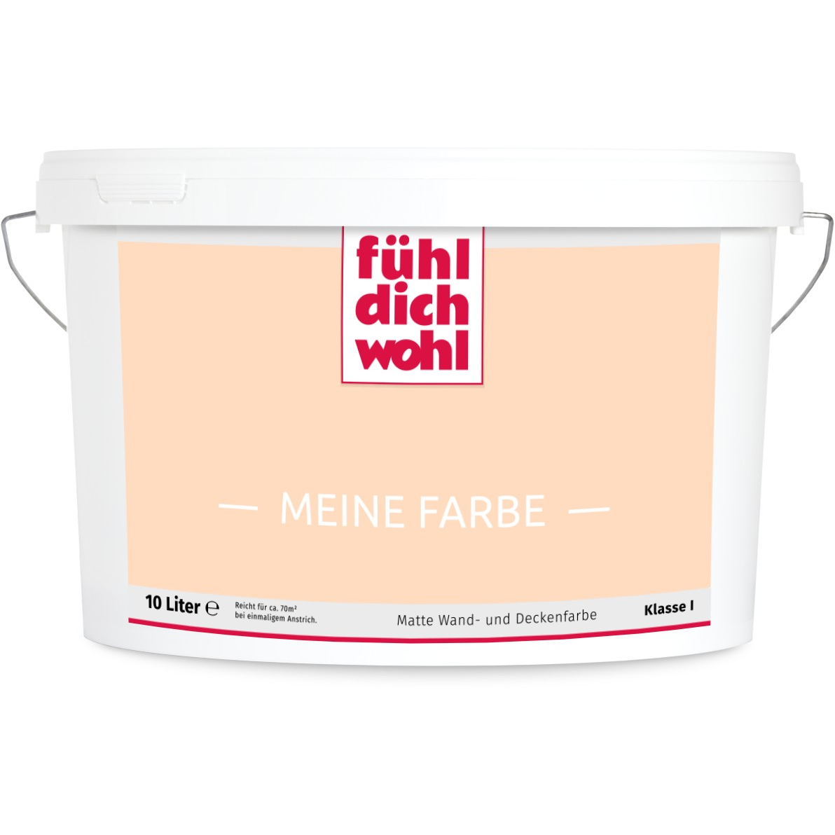 Fühl Dich Wohl "MEINE FARBE" ist eine Dispersionsfarbe mit höchstem Deckvermögen in Ihrem ausgewählten Farbton. Deckt beim einmaligen Anstrich. Spezielle Rezeptur für tropfarmes Verarbeiten.