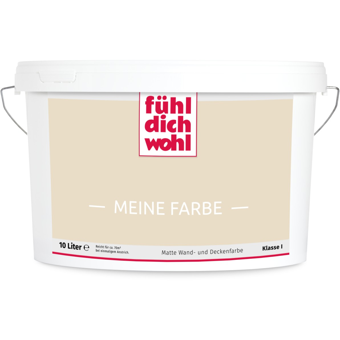 Fühl Dich Wohl "MEINE FARBE" ist eine Dispersionsfarbe mit höchstem Deckvermögen in Ihrem ausgewählten Farbton. Deckt beim einmaligen Anstrich. Spezielle Rezeptur für tropfarmes Verarbeiten.