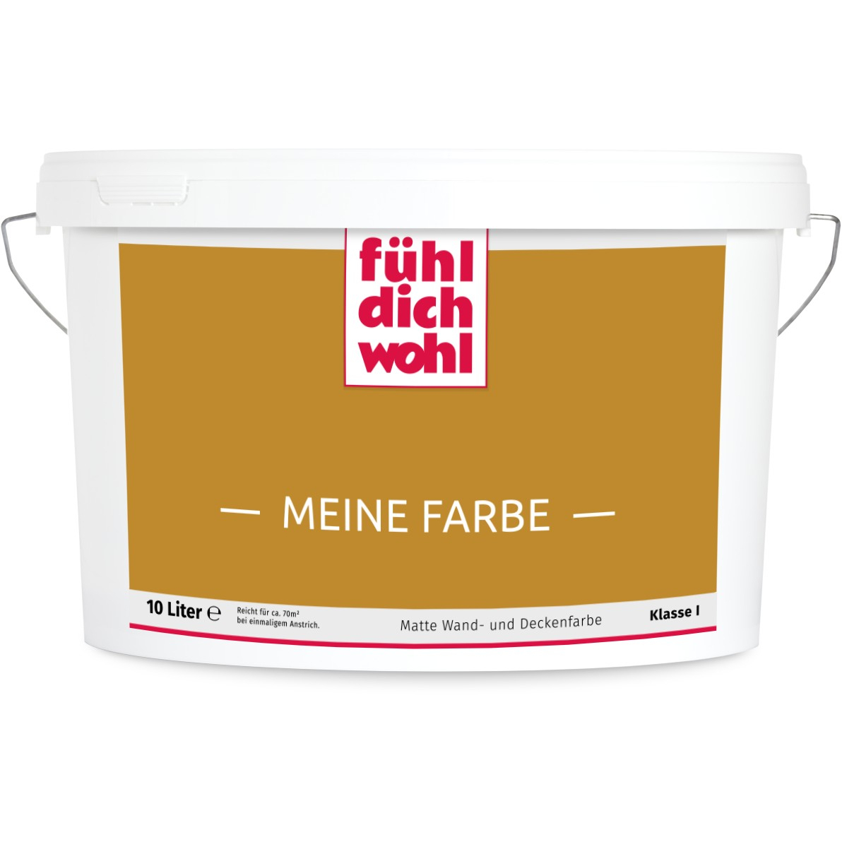 Fühl Dich Wohl "MEINE FARBE" ist eine Dispersionsfarbe mit höchstem Deckvermögen in Ihrem ausgewählten Farbton. Deckt beim einmaligen Anstrich. Spezielle Rezeptur für tropfarmes Verarbeiten.