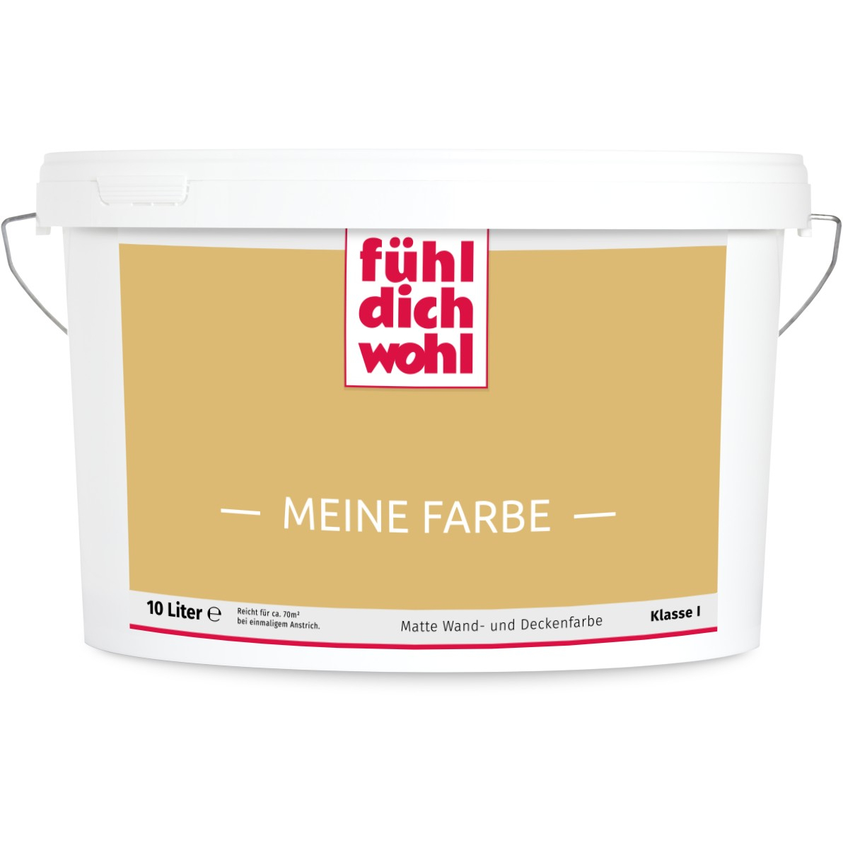 Fühl Dich Wohl "MEINE FARBE" ist eine Dispersionsfarbe mit höchstem Deckvermögen in Ihrem ausgewählten Farbton. Deckt beim einmaligen Anstrich. Spezielle Rezeptur für tropfarmes Verarbeiten.
