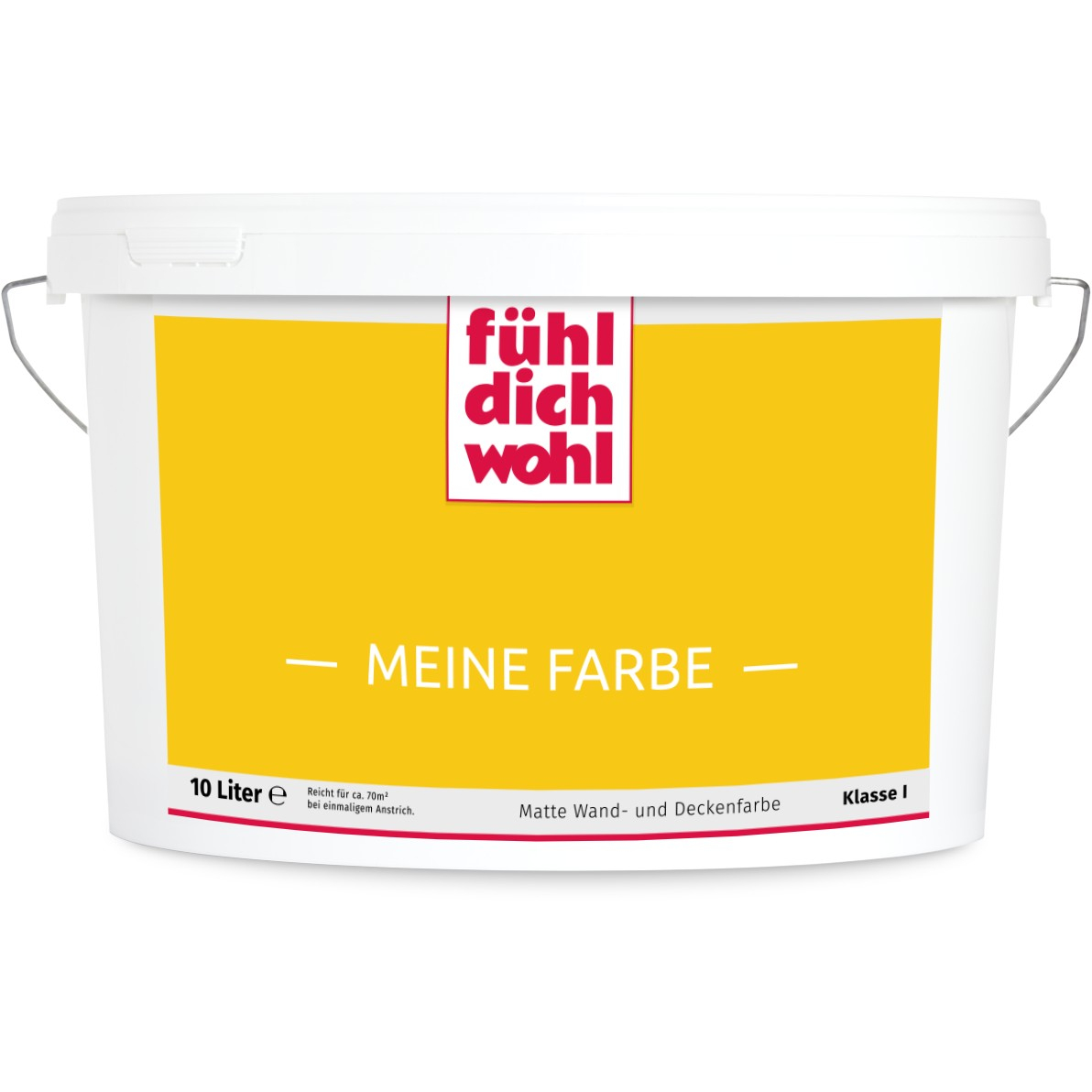 Fühl Dich Wohl "MEINE FARBE" ist eine Dispersionsfarbe mit höchstem Deckvermögen in Ihrem ausgewählten Farbton. Deckt beim einmaligen Anstrich. Spezielle Rezeptur für tropfarmes Verarbeiten.