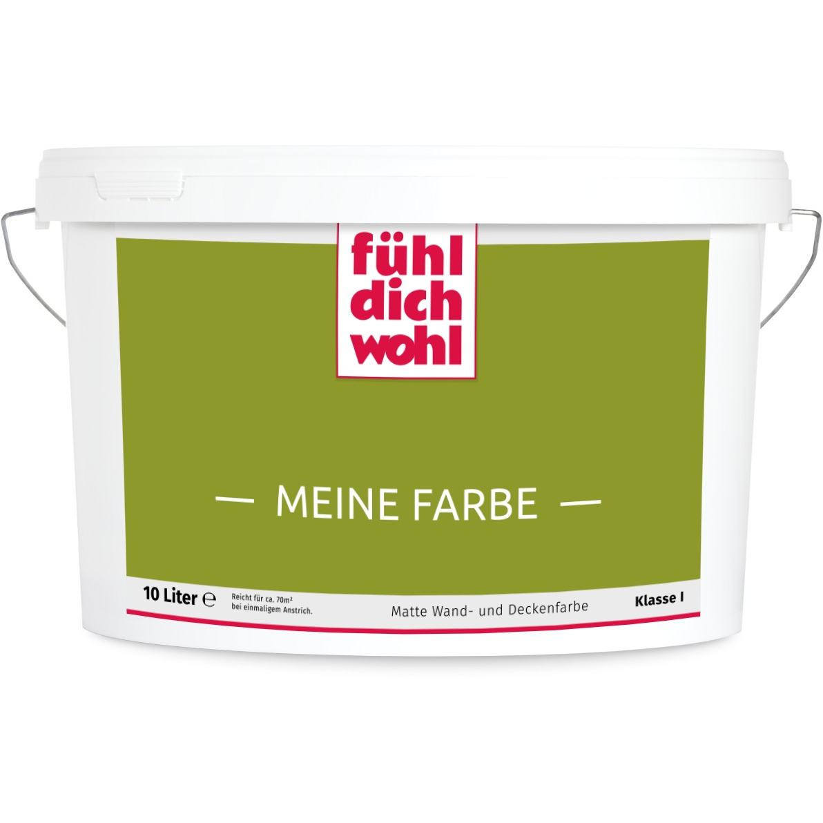 Fühl Dich Wohl "MEINE FARBE" ist eine Dispersionsfarbe mit höchstem Deckvermögen in Ihrem ausgewählten Farbton. Deckt beim einmaligen Anstrich. Spezielle Rezeptur für tropfarmes Verarbeiten.
